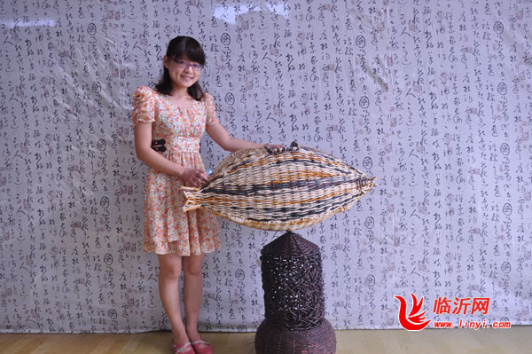 图3美艺公司孙姗小姐介绍公司的柳编工艺品