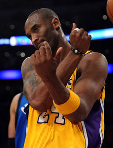 湖人首发阵容:科比-布莱恩特、德雷克-费舍尔、安德鲁-拜纳姆、保罗-加索尔和罗恩-阿泰斯特。