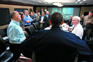 5月1日,美国华盛顿,白宫提供的照片显示,美国总统奥巴马与国家安全小组成员讨论击毙本·拉登的行动。