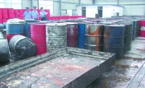 被查获存在非法使用地沟油制售食用油的济南格林生物能源有限公司的车间(7月4日摄)。小图为浙江宁海县一处初炼地沟油的作坊。新华社发