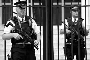 5月3日,英国伦敦,警察在美国驻英大使馆外执勤。继5月1日“基地”组织头目本·拉登的死讯被宣布之后,世界各国纷纷加强本国安全戒备。