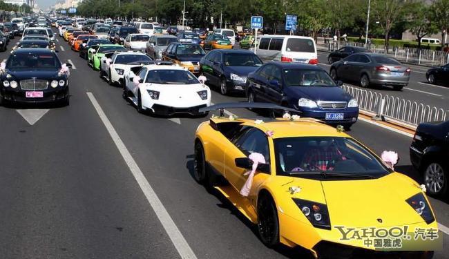 震惊长安街的兰博基尼婚车队。婚礼绝对hold住了!
