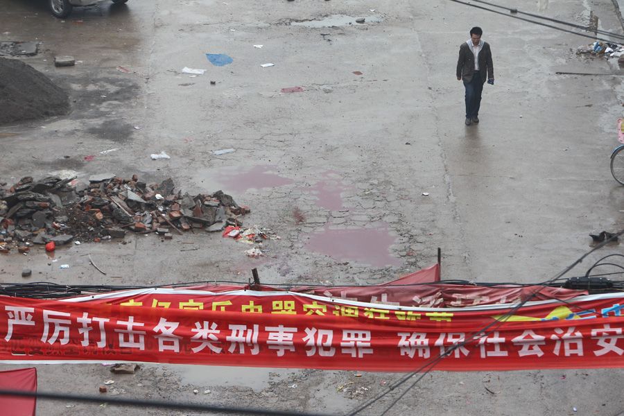 官方引述附近村民的说法称,犯罪嫌疑人王宏斌是一位30岁的男性,有精神病史。该嫌犯随后被警方控制。知情人称,王宏斌在家中曾打过父母、以前也住过精神病院,在村上见小孩就又掐又打。图为事故现场。