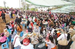 位于三层岩单板桥村小附近的寿宴现场,从昨上午8时许起,逐渐人声鼎沸起来。