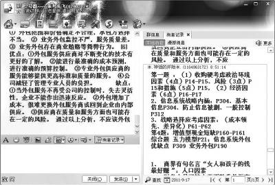 18日13时30分,《公司战略与风险管理》开考。伊洛轩发现,试卷的第1题与此前收到的飞信中的1道题一模一样。考试结束后,他打开手机再次对比了一下试题,“题差不多都有,只是答案有的不准确而已。”