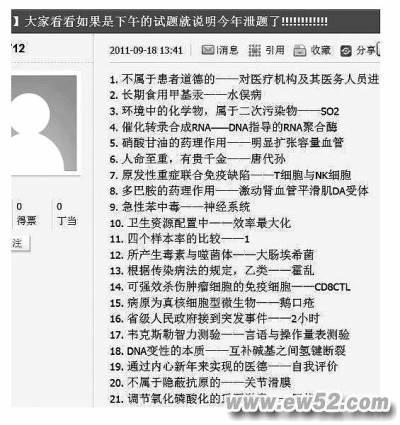 图2:丁香园论坛上的一则帖子显示,在今年医师资格考试开考前,相关考题已泄露。图片来自互联网