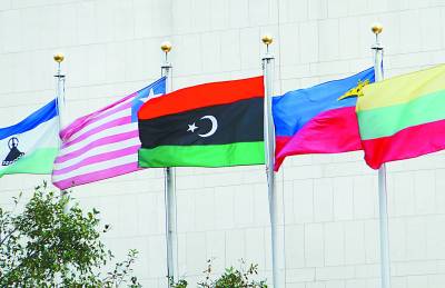 当天一早,联合国大楼外,利比亚过渡当局使用的红、黑、绿三色旗,已经取代了卡扎菲时代的国旗。“大阿拉伯利比亚人民社会主义民众国”的国名被简单的“利比亚”所代替。