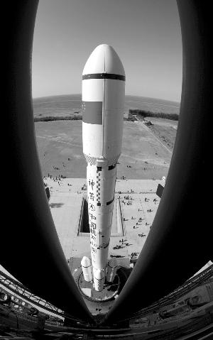 天宫一号目标飞行器、长征二F运载火箭组合体。新华社发