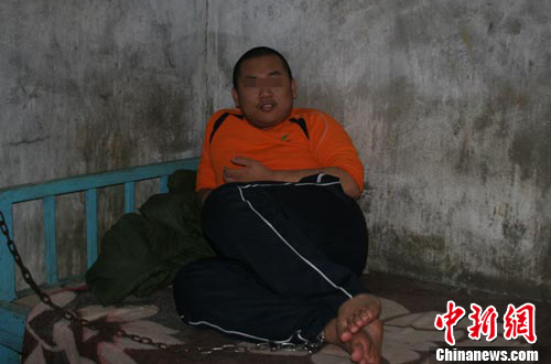 中新网乌鲁木齐9月26日电(记者 陶拴科)为防止犯病时惹事,新疆阜康市一18岁少年,被父母用3米长的铁链锁住脚腕已经三年有余。