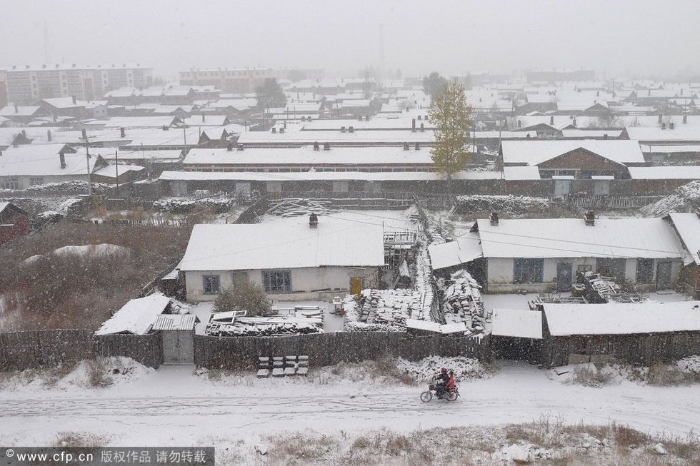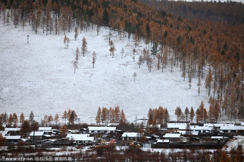 9月27日,内蒙古大兴安岭莫尔道嘎降下大雪。