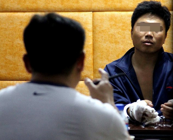 图:河北沧州泊头凶杀案犯罪嫌疑人秦长城被审讯中