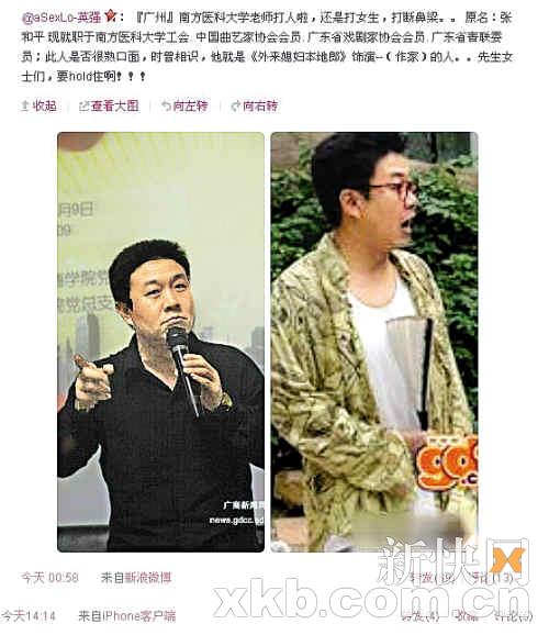 昨日,小玉父亲王先生将在派出所用手机拍下的打人者照片传上微博,博文称打人者张和平“曾经出演过《外来媳妇本地郎》中的老作家角色。为人师表竟然暴打几个弱小女孩。到了派出所居然矢口否认打了三个女孩!校方至今未出面解释!”,微博还附上了张和平的手机号码。微博发出后很快引起网友纷纷转载。
