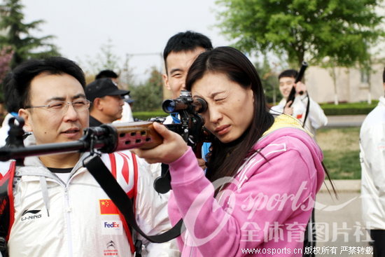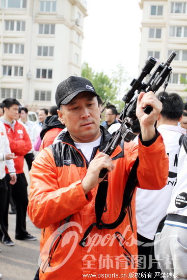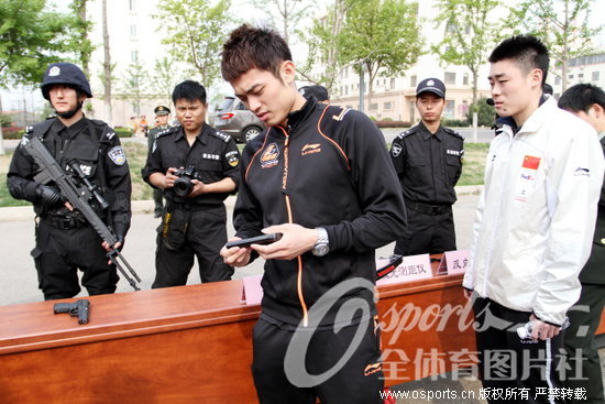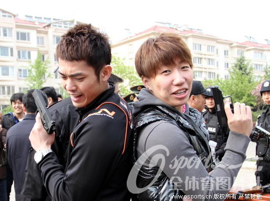 [组图]国羽参观青岛特警支队 林丹持枪造型酷