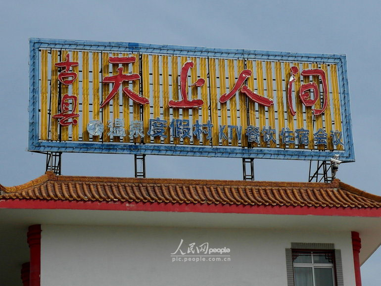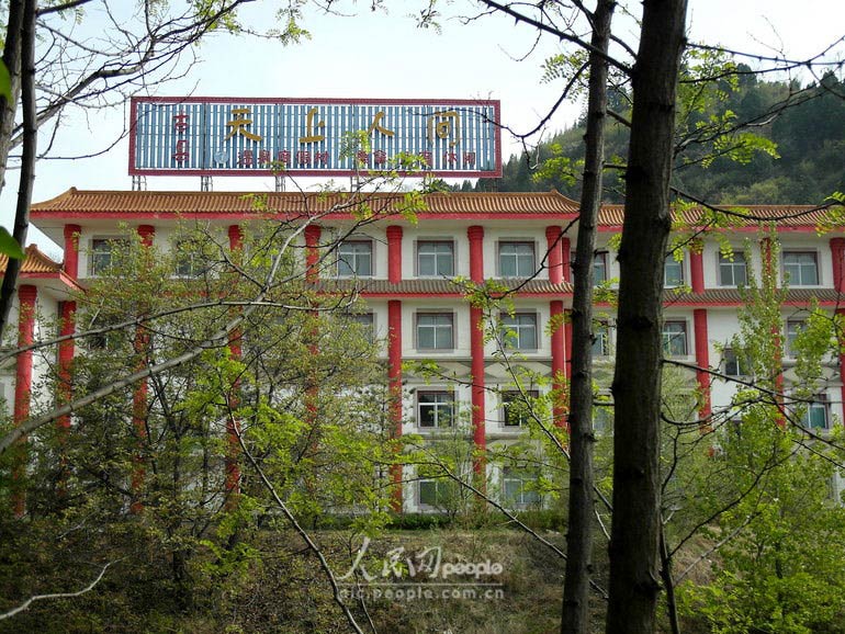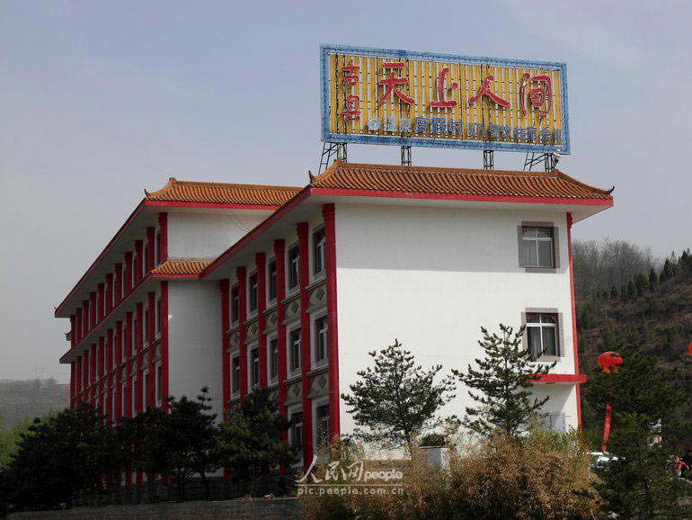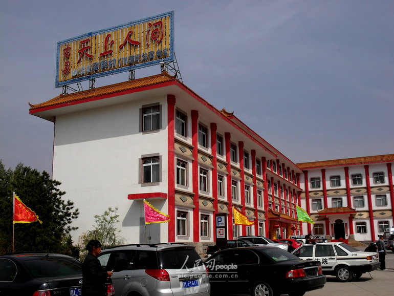 人民网古县5月5日电 2011年5月3日,山西省古县石壁乡“天下第一牡丹”景区里,小河的南岸绿树掩映中有两座不相连的四层建筑,“古县天上人间”大字分别竖立在两栋楼房的顶部,内设桑拿,温泉洗浴等项目,外表豪华的建筑与周边破旧的农家形成了鲜明的对比。除了每年的五一期间牡丹花开时节,这里每天都接待来自各地的客人,生意非常红火。 观望者/CFP