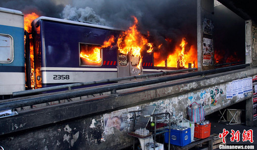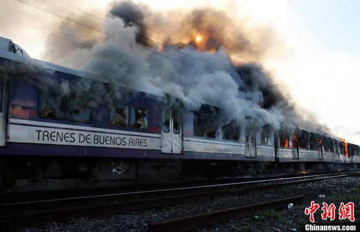 不满列车晚点 阿根廷乘客纵火烧毁火车