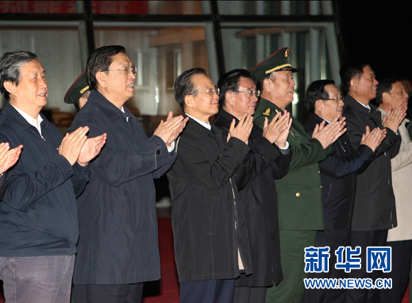 在北京航天飞行控制中心观看发射实况的领导同志还有:刘云山、刘延东、李源潮、徐才厚、令计划、梁光烈、孟建柱,以及中央军委委员陈炳德、李继耐、廖锡龙、靖志远、吴胜利等。