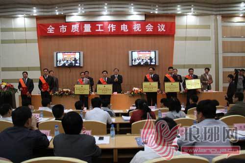 为全面加强质量管理,提升标注化水平,加快建设质量强市,临沂市质量工作电视会议于30日上午隆重举行。会上对获得2011年度临沂市市长质量奖获奖单位和个人、2011年度临沂市优质产品生产基地进行了表彰。