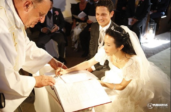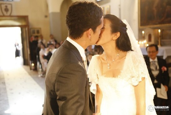 莫文蔚意大利举行婚礼 与新郎现场拥吻