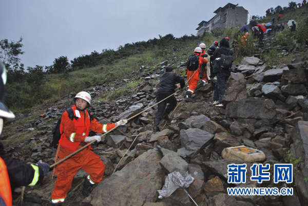 10月1日,消防官兵利用绳索在事故现场救援。新华社发