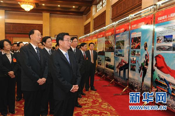 5月4日,中央纪委监察部会同中央抗震救灾资金物资监督检查领导小组在四川省成都市召开抗灾救灾和灾后重建监督检查工作总结会。中共中央政治局常委、中央纪委书记贺国强出席会议并讲话。这是会议开始前,贺国强参观“廉洁救灾,阳光重建”——四川省抗震救灾和灾后重建监督检查工作图片展。 新华社记者 饶爱民摄