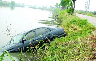 男子开着新车送女友回家 频频亲吻栽进河中(图)