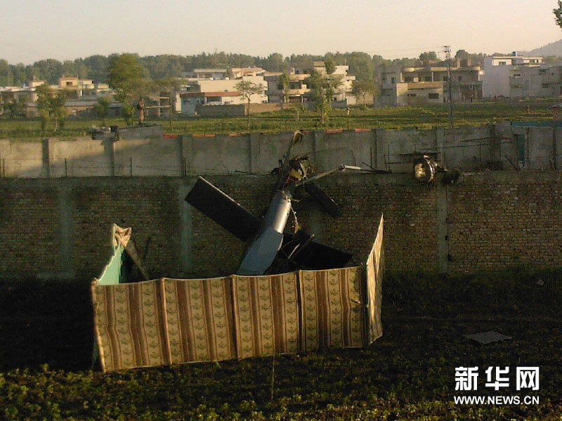 这是5月2日在巴基斯坦阿伯塔巴德拍摄的一架坠毁直升机的残骸。新华社发(卡马尔摄)