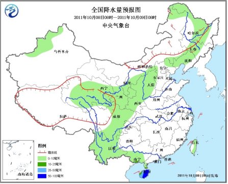 8~10日,海南、雷州半岛、台湾东南部等地有中到大雨(15~40毫米),其中,海南中东部有暴雨(50~130毫米)。8~10日,西北地区东部、华北中西部和东北部、东北以及西南地区大部等地有小到中雨(5~20毫米),陕西南部的部分地区有大雨(25~35毫米);新疆北部、青海西部有小到中雨(雪)或雨夹雪。