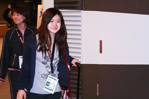 和赛场上梳着干练的长发相比,今天亮相赛场,由于没有训练和比赛的任务,福原爱将头发散开,散发出成熟女人的魅力,面对镜头,“瓷娃娃”依旧毫不吝惜笑容,频频挥手示意。手中拖着卡通图案的行李箱,福原爱说笑着走进赛场。福原爱进场时,中国女队正在场地内训练,细心的小爱更是不顾旅途的疲劳,特意多停留了一段时间,希望借此机会,观察对手。