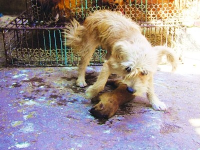 陈女士告诉记者,她早上到房子外的鸡笼察看,发现一只黄鼠狼身上血淋淋地趴在鸡笼边,地上有一地鸡毛,还洒有未干的血迹,而自家的小狗正在黄鼠狼周围来回转,嘴角处还有一些黄鼠狼的毛。看来,这抓住偷鸡贼的,正是自家的小狗。
