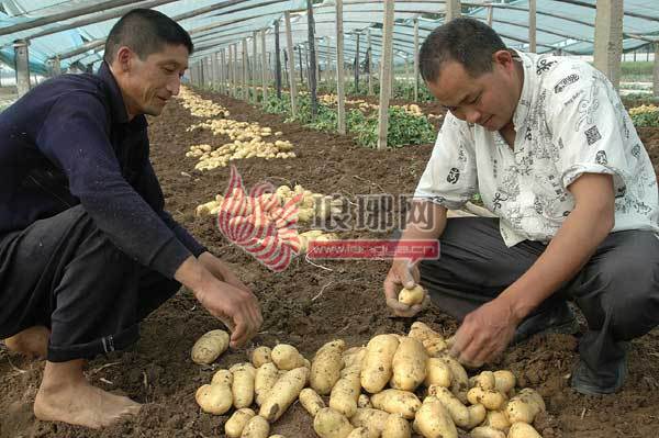 5月8日, 费县上冶镇石桥村村民刘成颂的土豆大棚里,十多位乡邻在帮他忙着收获土豆。土豆播种后,刘成颂和村里其他几十家土豆种植户就联系到城里客户,减少中间流通环节,实现农市直接对接。现在到了收获季节,客户带车就在地头等着装货,收购价格每公斤2.6元。该镇百余亩大棚土豆陆续采收上市,这些土豆采用多层薄膜覆盖、有机蔬菜管理方式,上市早、口感好,平均亩产大约在1600公斤左右,收入可达4000多元。
