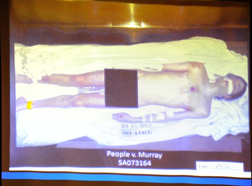 照片中杰克逊的遗体全身赤裸,仰躺在一张解剖台上,隐私部位被打上了马赛克。据罗杰斯称,他的手臂和大腿上依然保留着静脉注射的痕迹。
