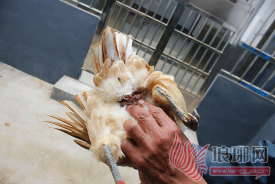 母鸡同时长了两个尾巴和两个肛门(记者 左肖 摄)
