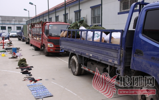 “在三个团伙的窝点、出租房、车库和批发市场销赃点里,又缴获三辆作案奥玲轻卡,还有赃款购买的八辆轿车、家用电器、棉纱、洗衣机等,总价值二百余万元。”兰山公安分局刑侦大队四中队杨东队长告诉记者,他们还起获了铁蒺藜、钢弹各类刀具、假发等大量作案工具,清点时占满半个球场。