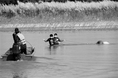 昨日下午,救援人员在泰国清盛县湄公河水域打捞出一具尸体。尸体手部被绑,调查人员称可能是被毒贩劫持并杀害的中国船员。新华社记者 杨定都 摄