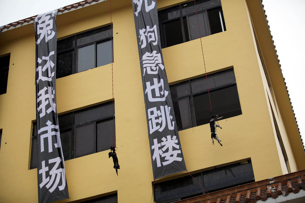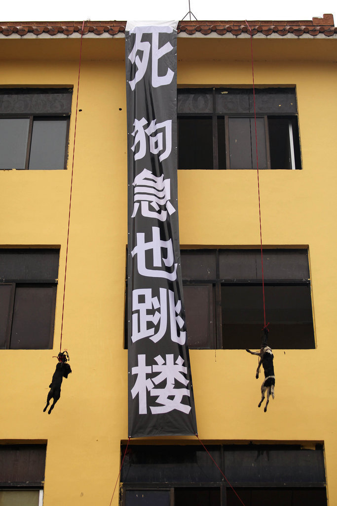 挂横幅吊活狗