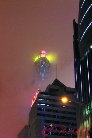 珠江新城,西塔笼罩在雨中。