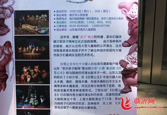 2011年10月15日上午,由山东省济南市儿童剧院出演的人偶童话剧《白雪公主》于10:00在临沂蒙山沂水大剧院上演。