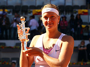 新浪体育讯 北京时间5月8日消息,总奖金为450万美元的WTA顶级巡回赛强制参赛的马德里公开赛结束女单决赛争夺。之前在半决赛中横扫金花一姐李娜的捷克新星科维托娃再进一步,面对本周状态火爆的4号种子阿扎伦卡,这位90年出生的天才少女以7-6(3)/6-4收获完胜,夺得个人本赛季继布里斯班以及巴黎之后的第三项冠军,而这同时也是其职业生涯迄今为止所斩获的最为重量级的皇冠赛事桂冠。
