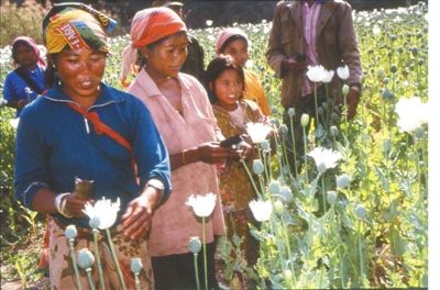 在金三角,缅甸佤邦烟农采收罂粟。资料图片