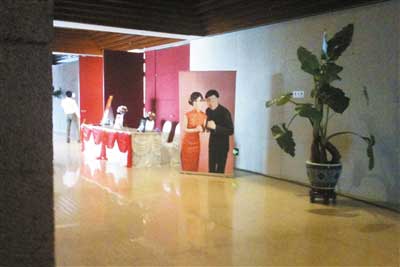 昨日,国家博物馆5层摆放着一对新人的照片,一场私人婚礼在此举行。本报记者 李超 摄