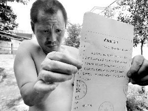 8月30日,河南洛阳嵩县,吕天喜展示释放证明书。曹福川 摄 来源:新京报