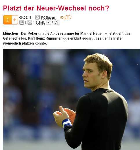 布特续约、克拉夫特决定走人,拜仁慕尼黑的门将针对下赛季的变化一切看来都是朝着迎接诺伊尔的方向发展,看似板上钉钉的转会却在最近有了一丝变故。5月8日的《慕尼黑日报》报道,据拜仁慕尼黑俱乐部主席鲁梅尼格透露拜仁与沙尔克04就诺伊尔的转会谈判问题存在不小的分歧,这一分歧可能导致诺伊尔转会拜仁失败。