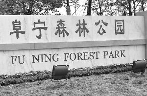 4月29日上午,记者来到了阜宁森林公园,在森林公园门口,一块近百平方米面积的空白石碑矗立在公园的正门口。据了解,这里曾有阜宁森林公园的招牌,但现在上面的字都被人抹掉了。记者看到,公园入口处有几名保安正在对现场进行看管,整个公园被白色的围墙包围。
