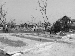 “虎落平川被狗欺”描述道:原阜宁森林公园字牌已不见踪影,大门口正重建新的门卫房,伸缩门已有雏形。再向北走,是一个长方形水塘,水已抽干,正在修缮配套工程。水塘东西两侧各已建成六幢二层西洋别墅,错落有致,别有风味。