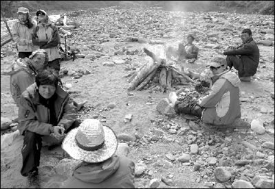上海“驴友”吉刘然说,“我们原计划走海子沟-犀牛海-龙岩-卧龙一线,定于10月7日返回成都。”团队过了龙眼平台后,选择了原本应该是最快的出山路线——从正河沟进入耿达,但随后发现,山洪冲毁了原来的路线,形成一条宽8米、深2到3米的河。