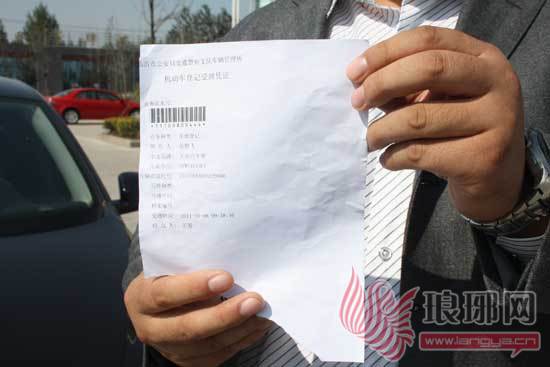 17日,记者见到了市民范先生,他向记者出示了购买新车的所有手续。据范先生介绍,今年10月5日,他在市区一汽车公司购买了一辆轿车。10月8日,范先生办理了所有手续后来到临沂交警支队在此公司的服务站选号。他连选了5次也没有选到中意的。10月10日,他再一次来到服务站选号,连选了几次仍然没有选到合适的。10月15日,范先生又一次来到服务站,当输入车辆信息后,车辆管理系统却显示“此车已挂牌”,选号的时间为“10月14日上午10时零1分”,选号地点却是范先生从未去过的“临沂市交警支队华东交通管理服务站”。