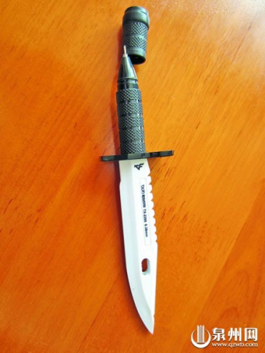 记者随后又来到丰泽第一实小对面的一家文具店。一个学生正在问老板:“‘枪笔’一支多少钱?”老板一边找钱一边回答:“两块五。”记者拿起那所谓的“枪笔”一看,宛然就是一把袖珍型的小猎枪,而在“枪笔”的旁边,躺着一大排的“匕首笔”。