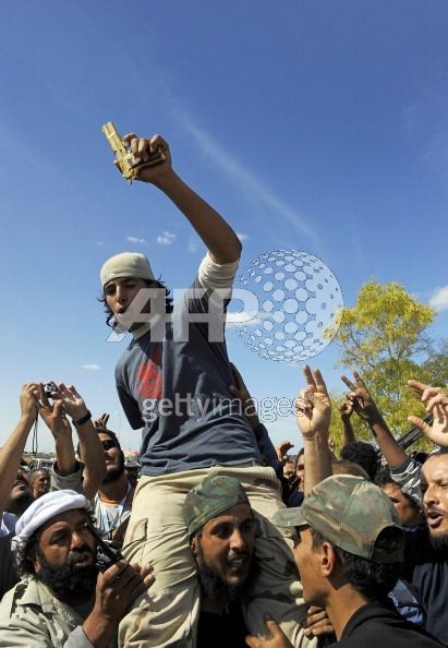 利比亚士兵从卡扎菲身上缴获金手枪