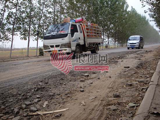 记者在白旄镇柳庄村前的路段看到,几百米长的公路路面严重受损,十步一大坑,五步一小坑,路面龟裂如网,碎石遍布,车辆驶过沙尘四起,乱石飞迸,为了避免沙尘和轮胎受损,人来车往都须减速慢行。