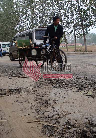 “每到雨天路上更难走了,到处是水坑,一不留神就掉坑里了!”该庄村民张大爷推着电动三轮车,碾过坑洼不平的路面慢慢地走着。他说每次骑车经过这里,都得停下来,推着车一步一步慢慢地走,“要是骑在车上,颠得骨头都松了,俺和俺这‘老伙计’(三轮车)都经不起这般折腾了!”